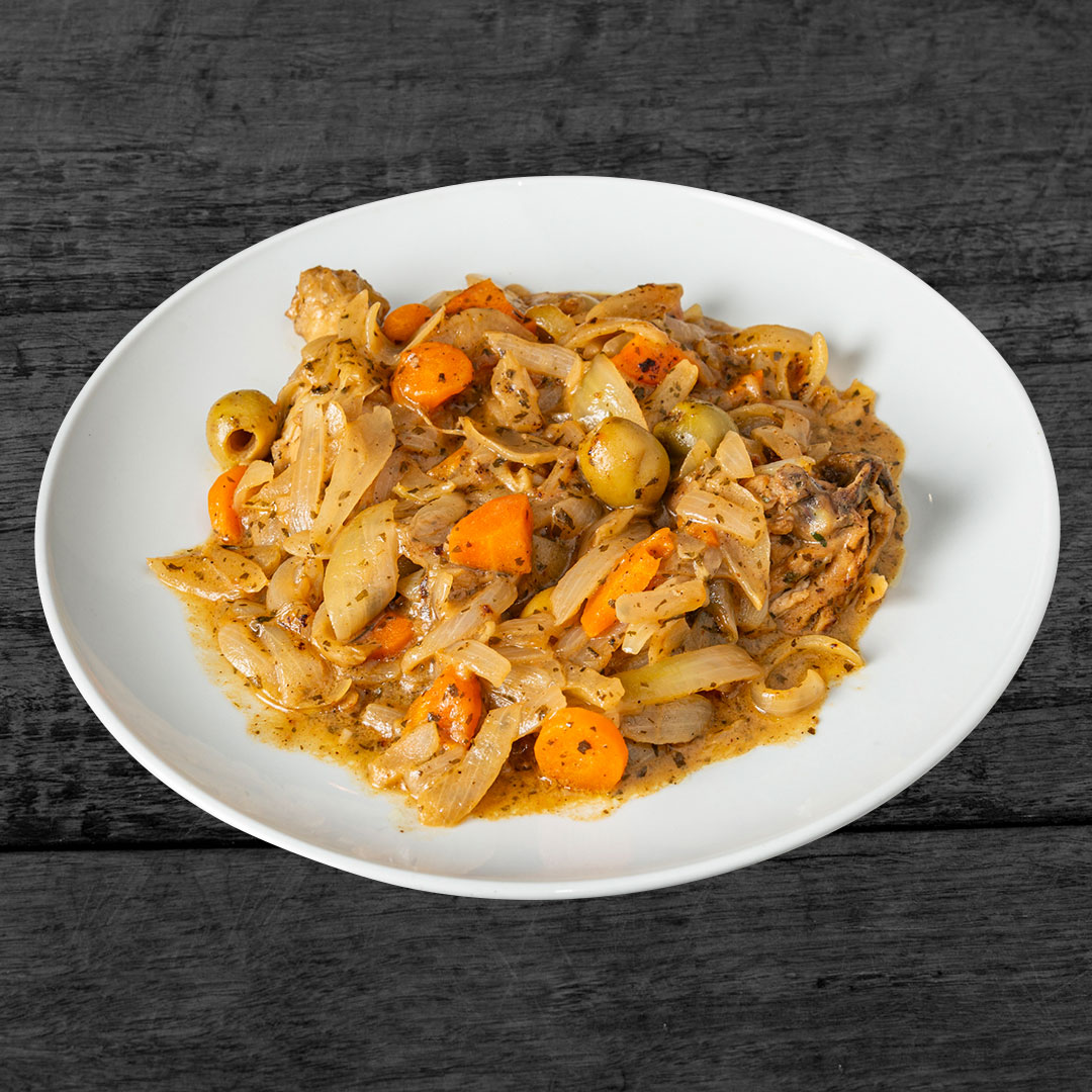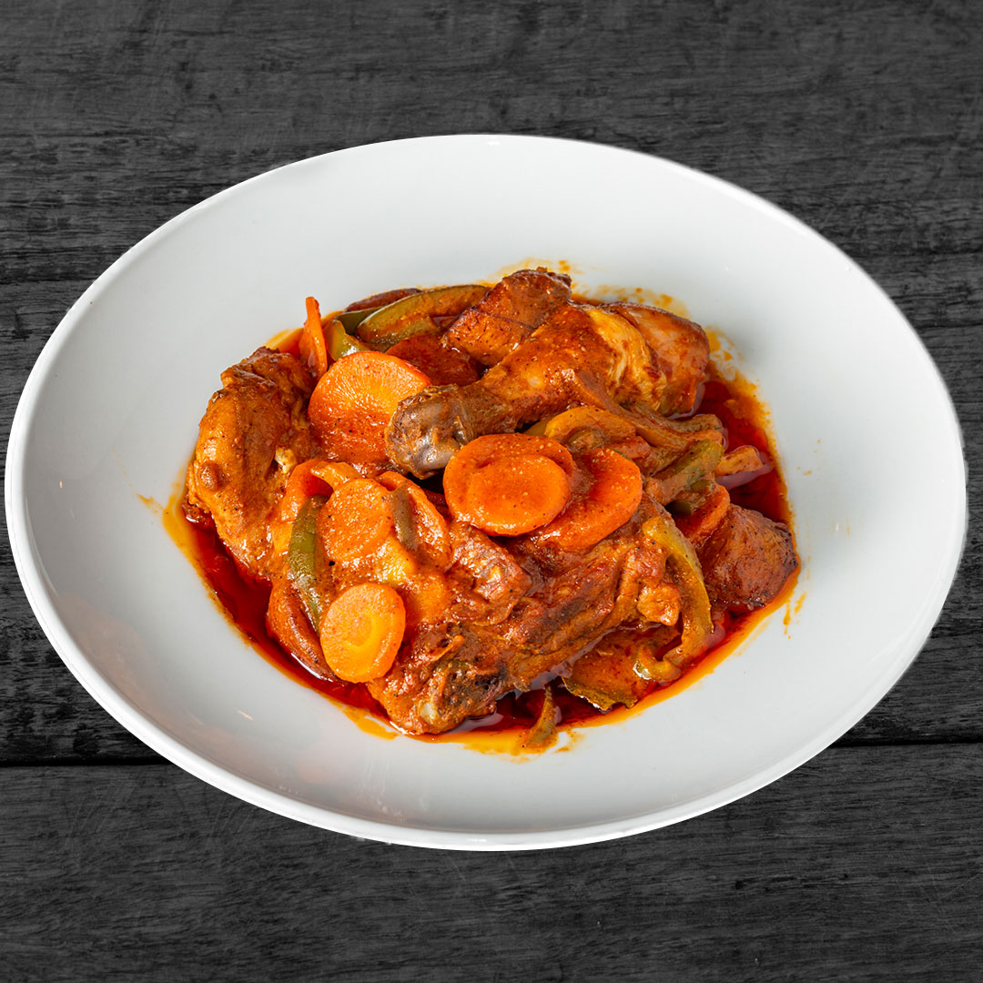 Poulet mijoté avec légumes et épices, tendre et savoureux pour une explosion de saveur traditionnelles.