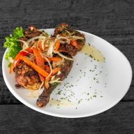 Pintade mijoté lentement avec légumes et épices, offrant une viande tendre et des saveurs intensément parfumées.